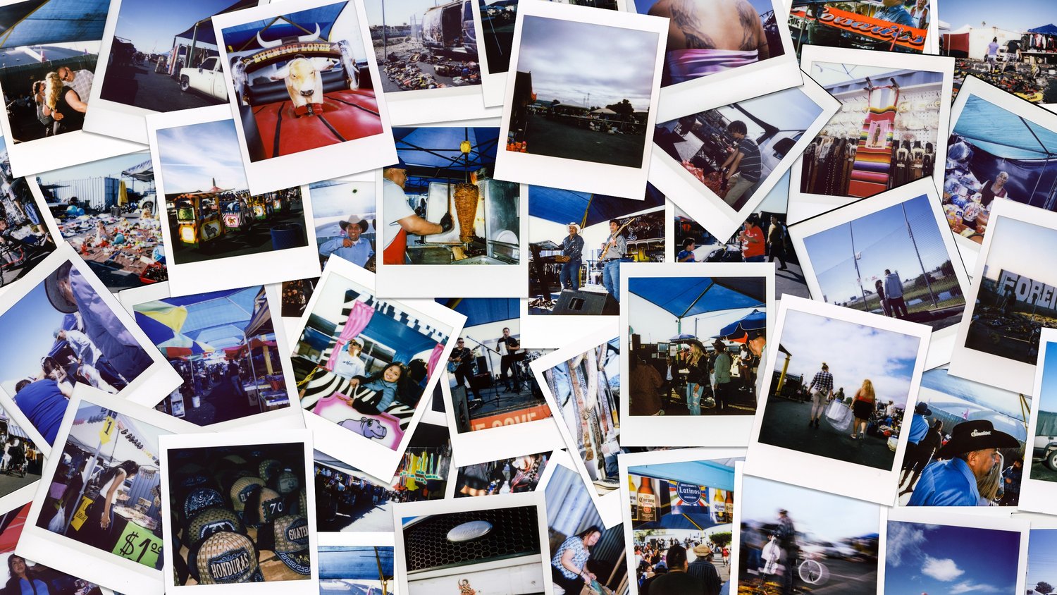 Like flea markets throughout the country, Coliseum Swap Meet, an open-air market known affectionately as “La Pulga” in East Oakland, is a reflection of the community it serves. Photo Illustration: Instax film from four weekends at La Pulga in Oakland’s Coliseum Industrial neighborhood, sprawled across the frame.